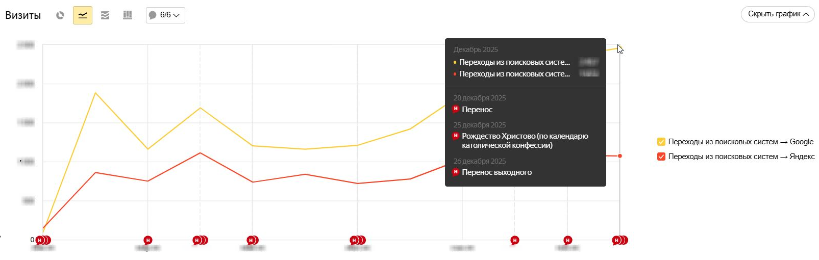 Эти работы снизили долю «мусорных» страниц в индексе, улучшили качество внутренней структуры и обеспечили стабильную индексацию приоритетных разделов, что стало базой для дальнейшего роста позиций и трафика.