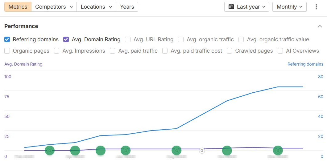 Внешняя оптимизация проводилась с акцентом на формирование естественного и тематически релевантного ссылочного профиля без резкого наращивания ссылочной массы.