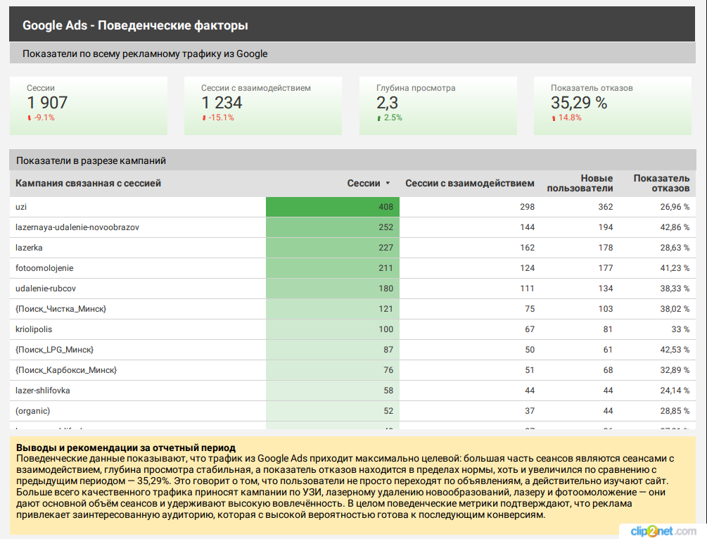 Оптимизирована структура целей, фокус на форме и звонках позволил увеличить количество записей в центр.