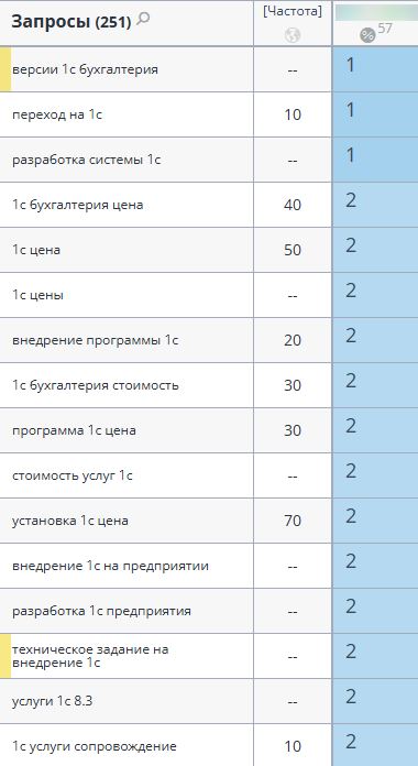 Компания работает в высококонкурентной нише, предлагая решения для автоматизации учета с использованием популярных платформ, таких как 1С в Беларуси. Конкуренция на рынке программного обеспечения для бизнеса высока, и компании сталкиваются с постоянным давлением со стороны множества крупных игроков, которые предлагают комплексные решения для автоматизации и учета. В этой сфере важнейшими критериями успеха являются высокая поисковая видимость, точная настройка контента и конкурентоспособная работа с пользователями.