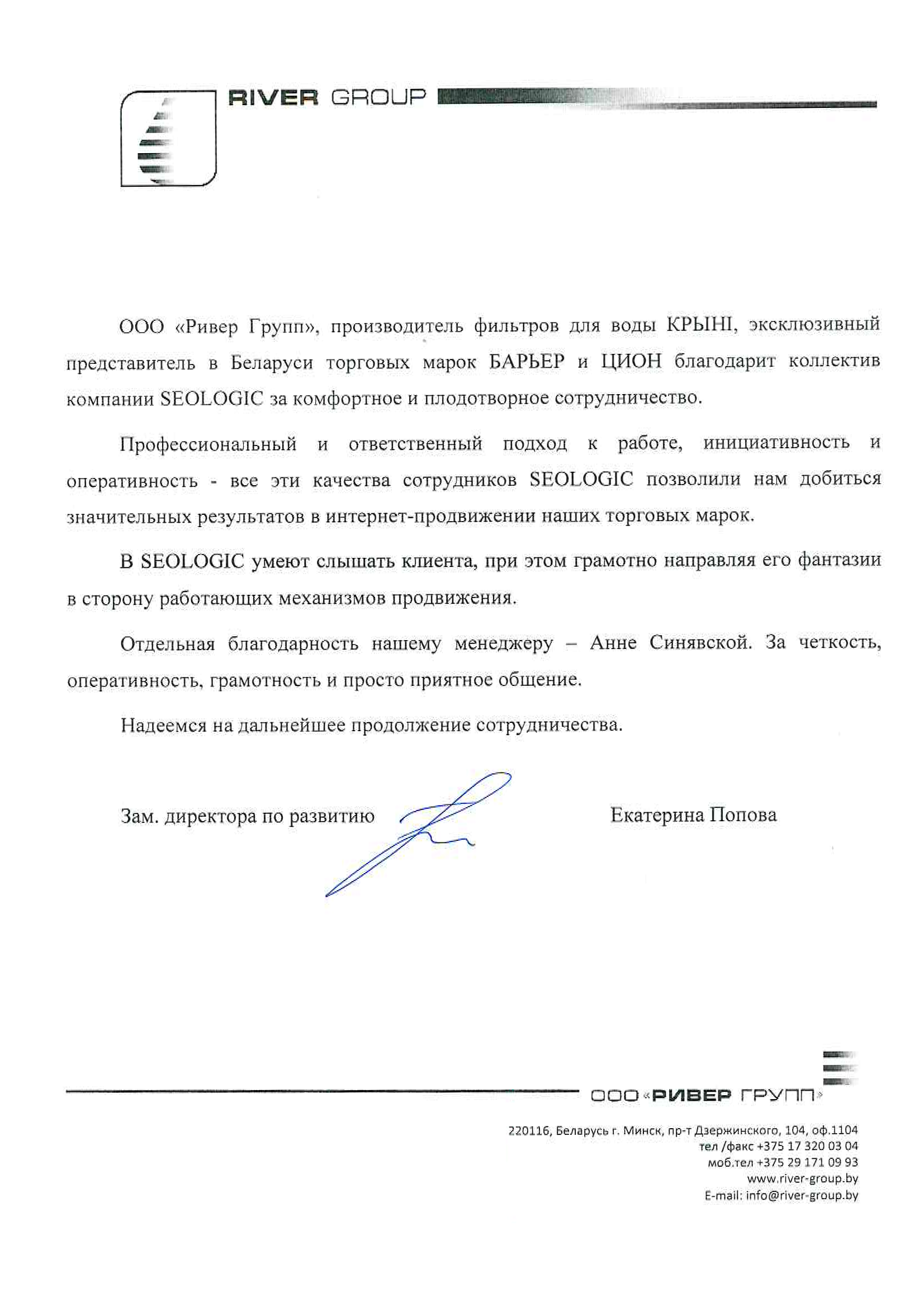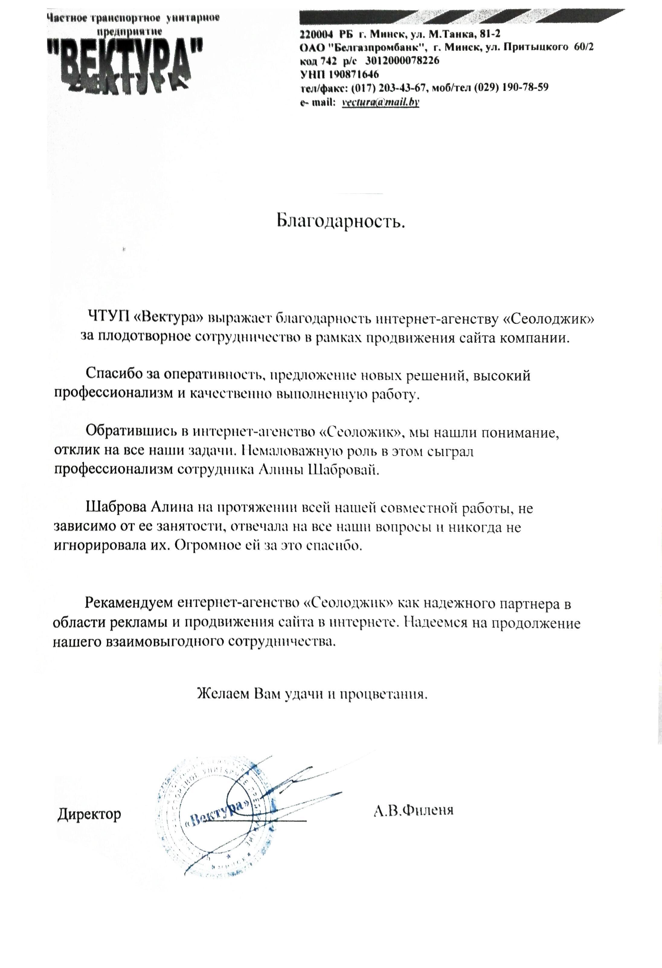 ЧТУП «Вектура» выражает благодарность интернет-агентству «Сеолоджик» за плодотворное сотрудничество в...