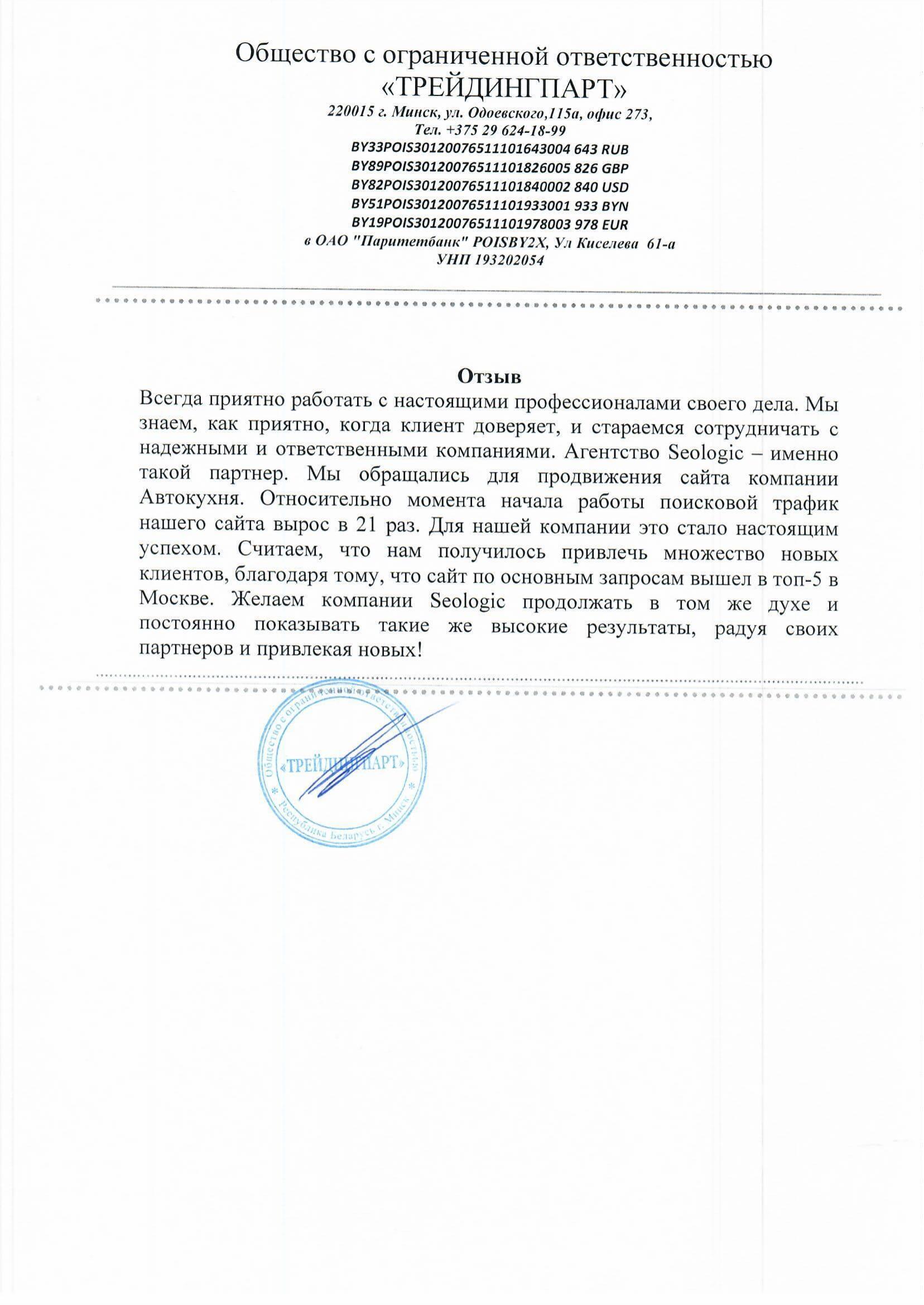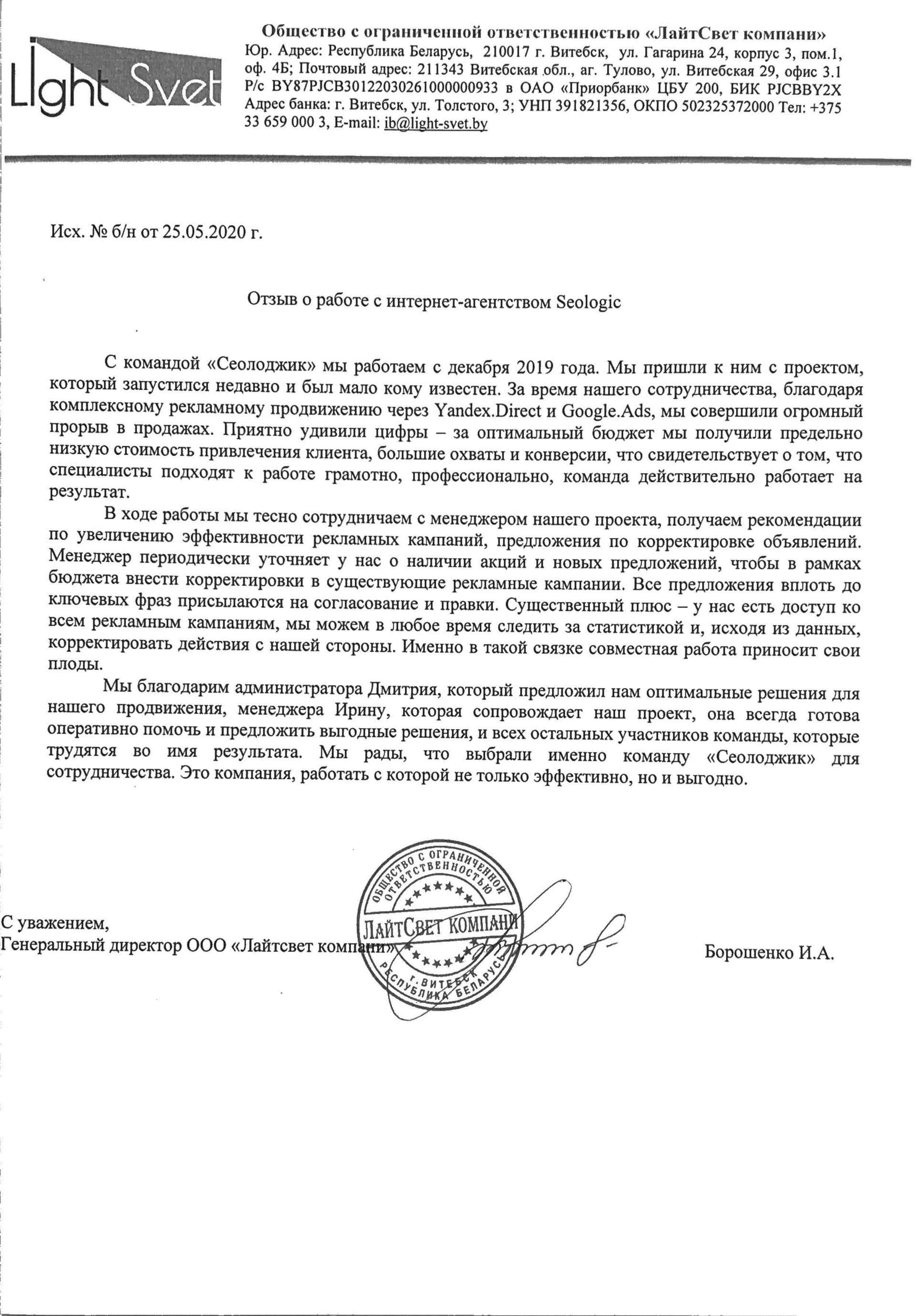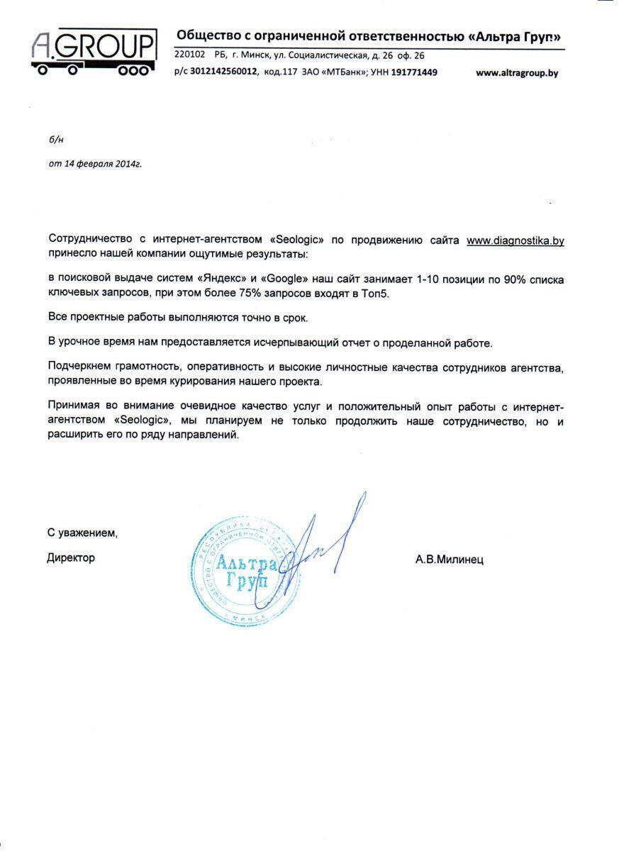 Мы очень благодарны Интернет-агентству «Сеолоджик» за успешное сотрудничество. За короткие...