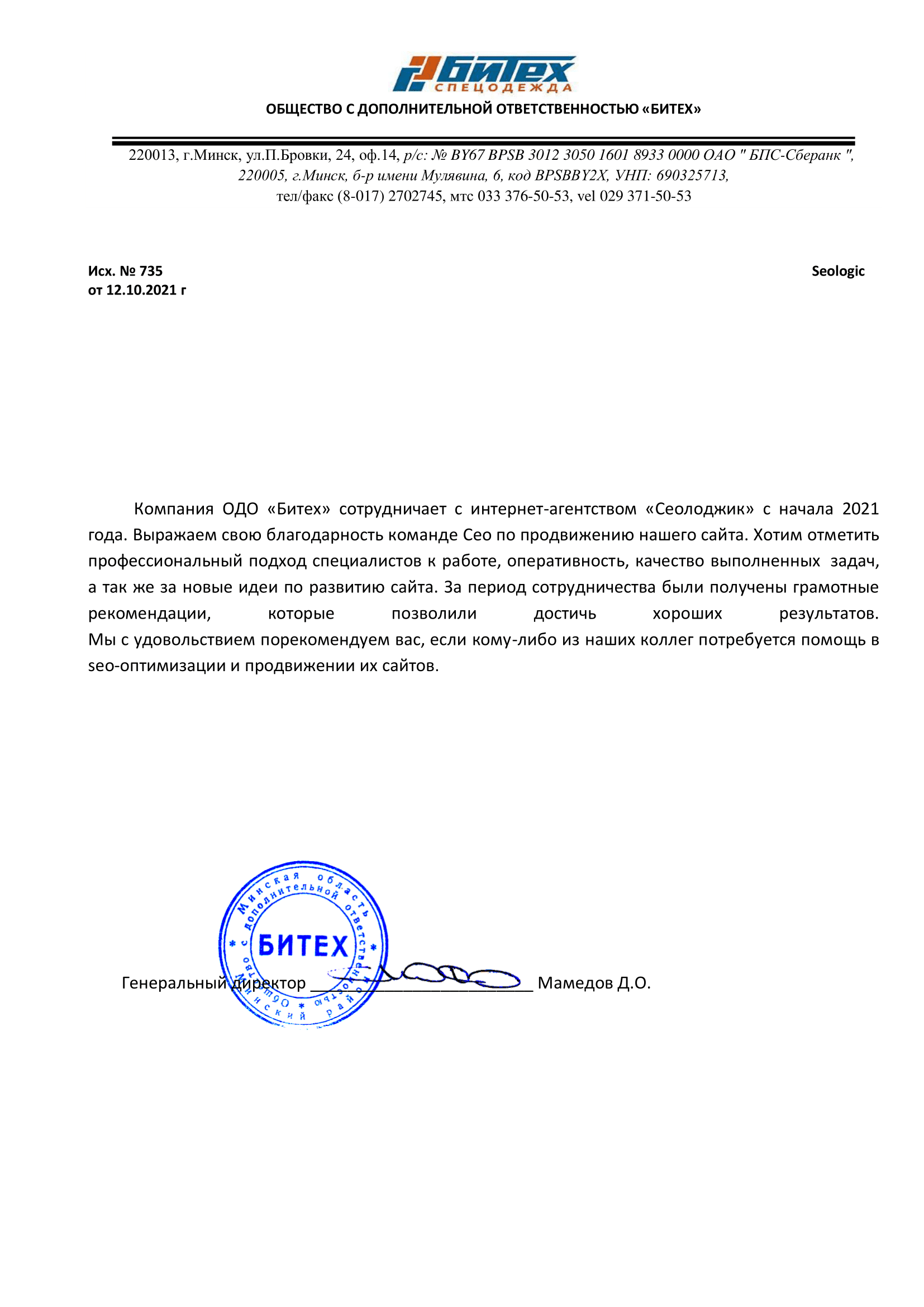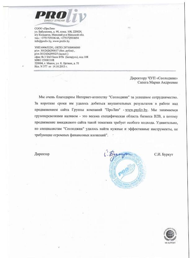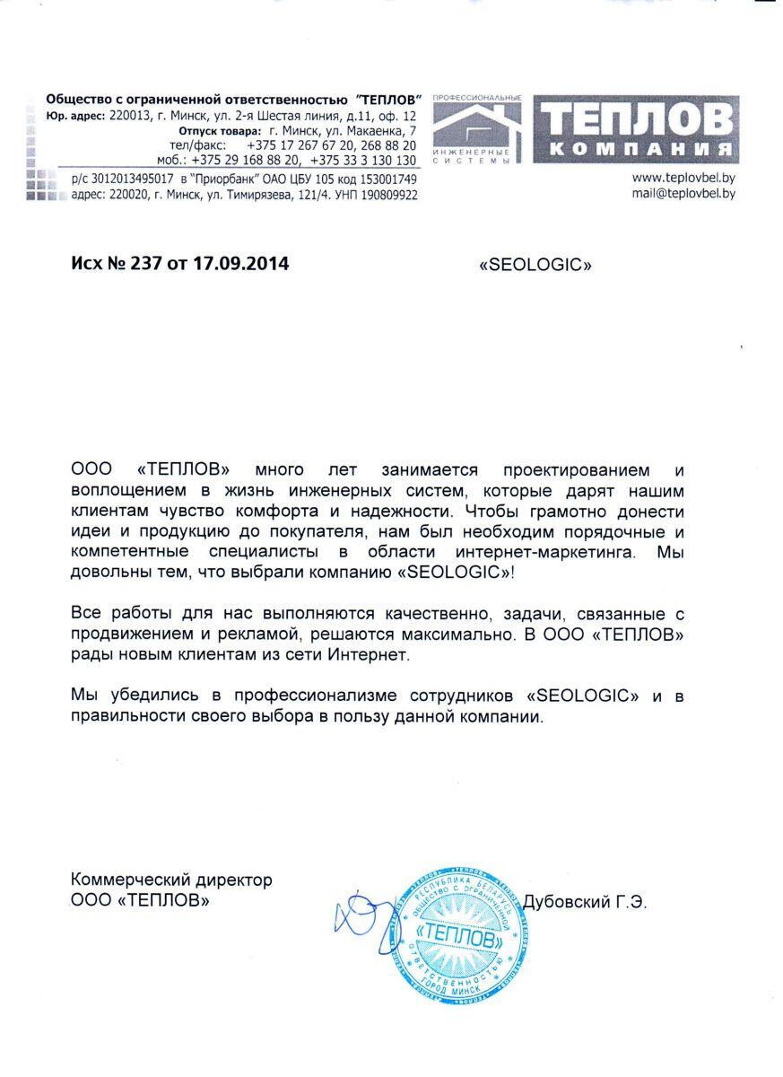 Выражаем благодарность коллективу компании «Сеолоджик», за продвижение нашего сайта в...