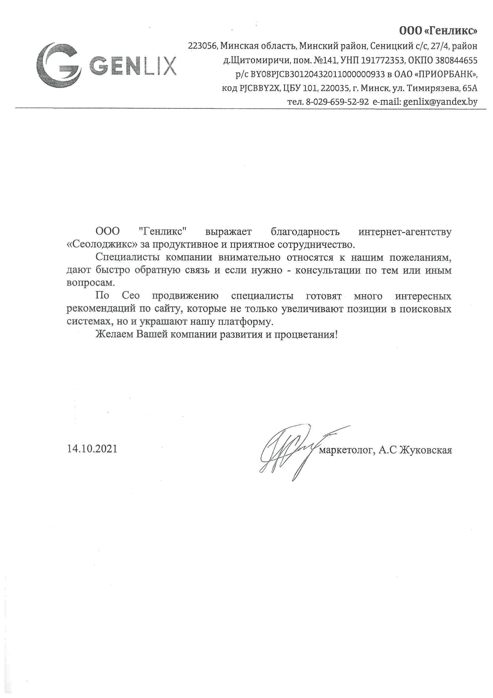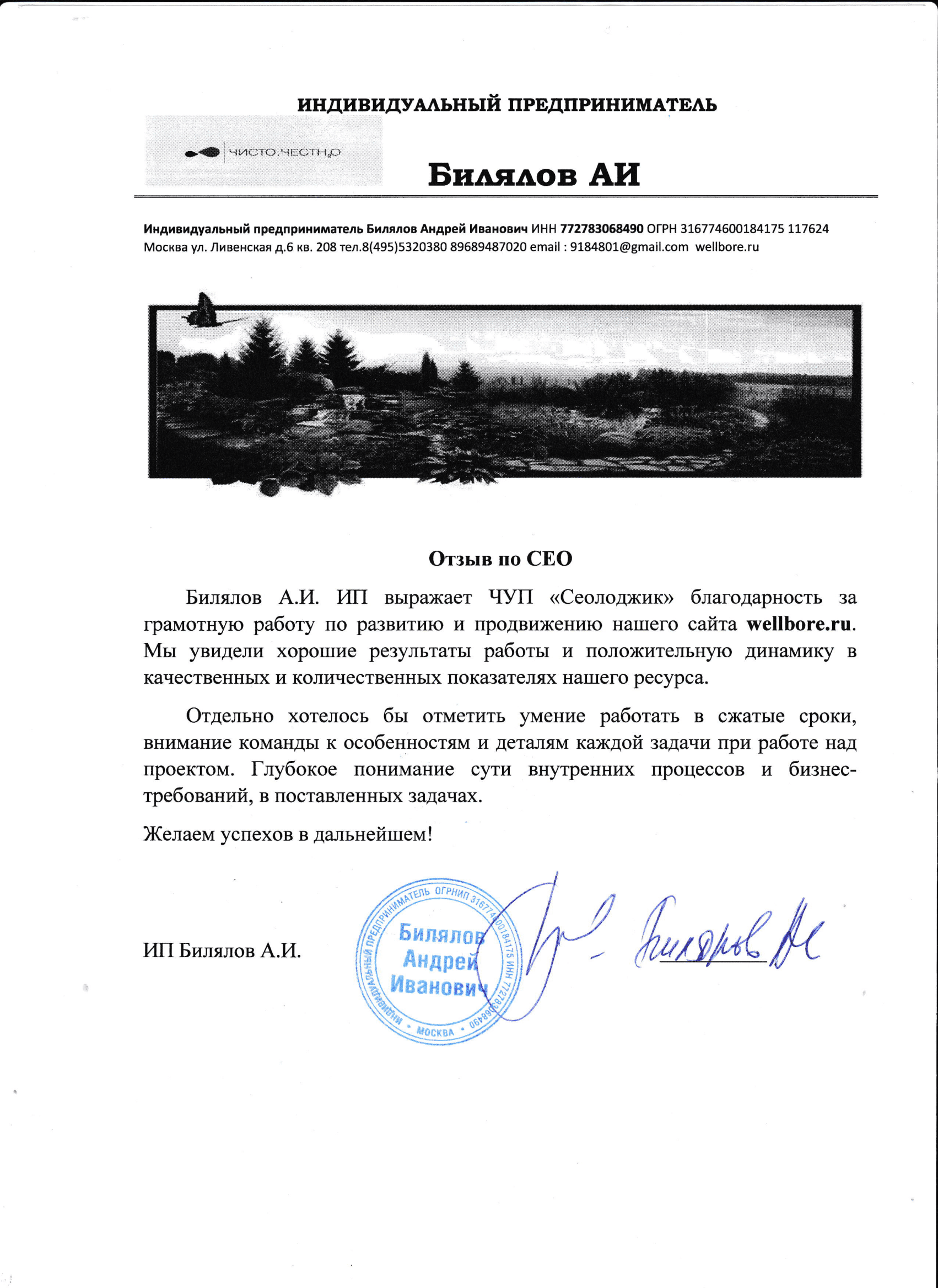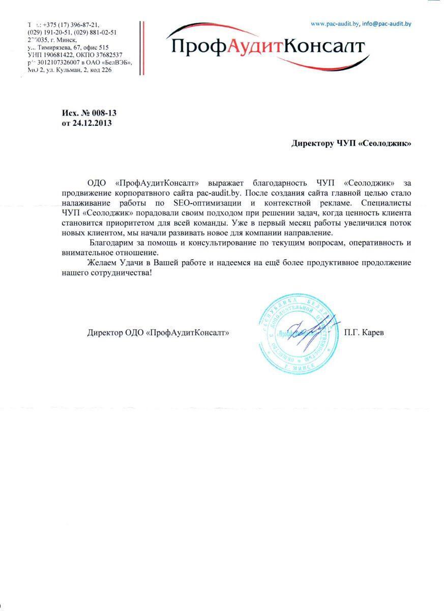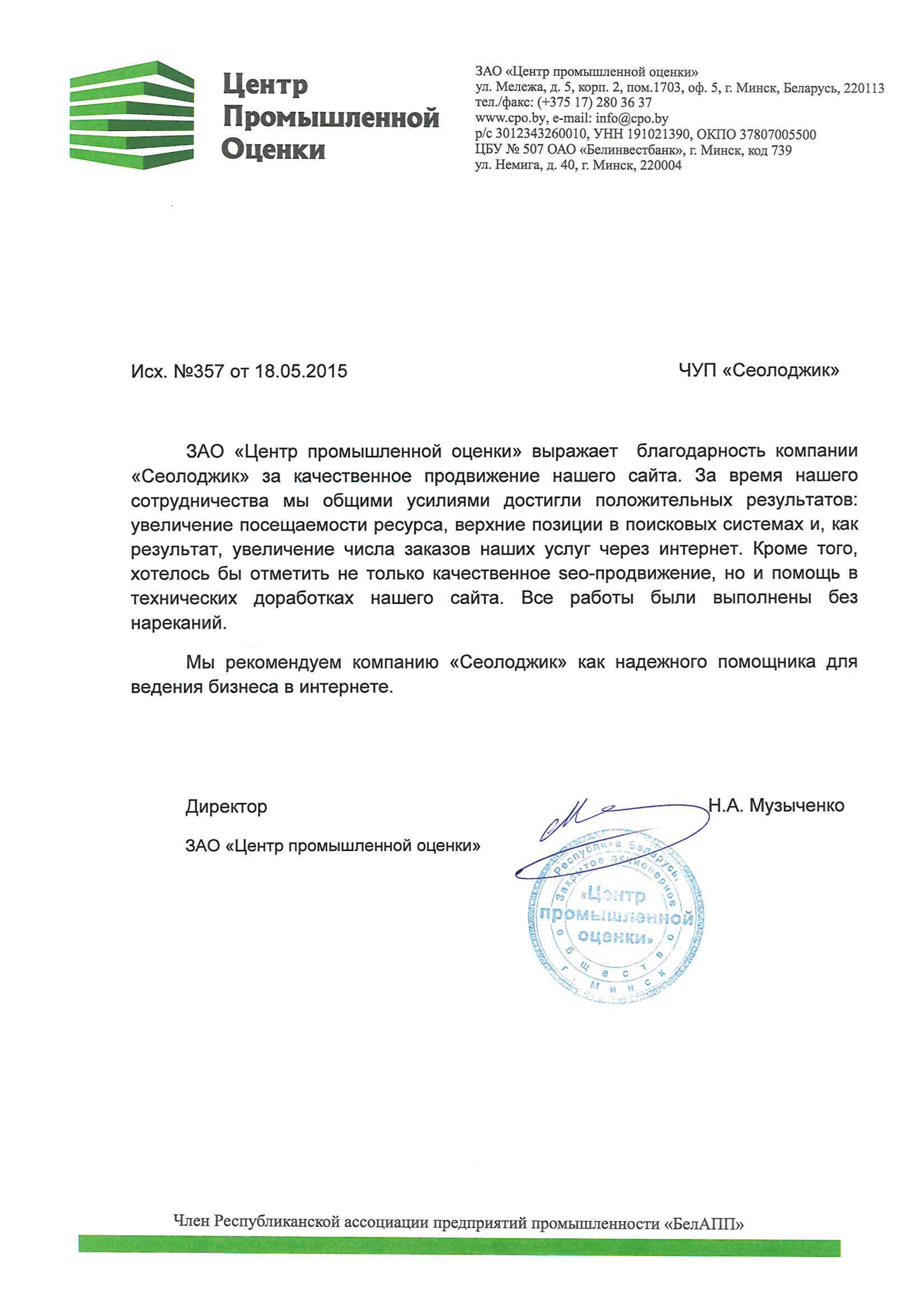 ЗАО «Центр промышленной оценки» выражает благодарность компании «Сеолоджик» за качественное...