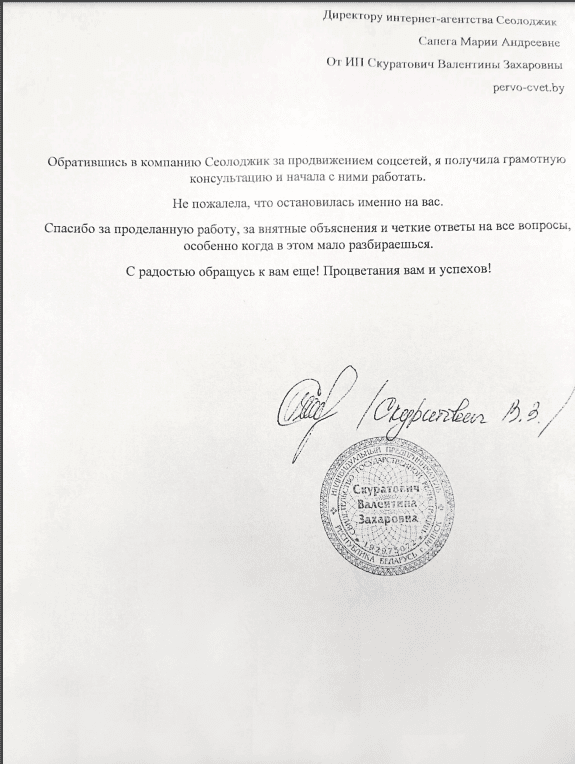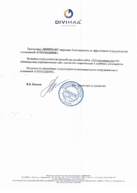 Типография ДИВИМАКС выражает благодарность за эффективное сотрудничество с компанией «СЕОЛОДЖИК»....