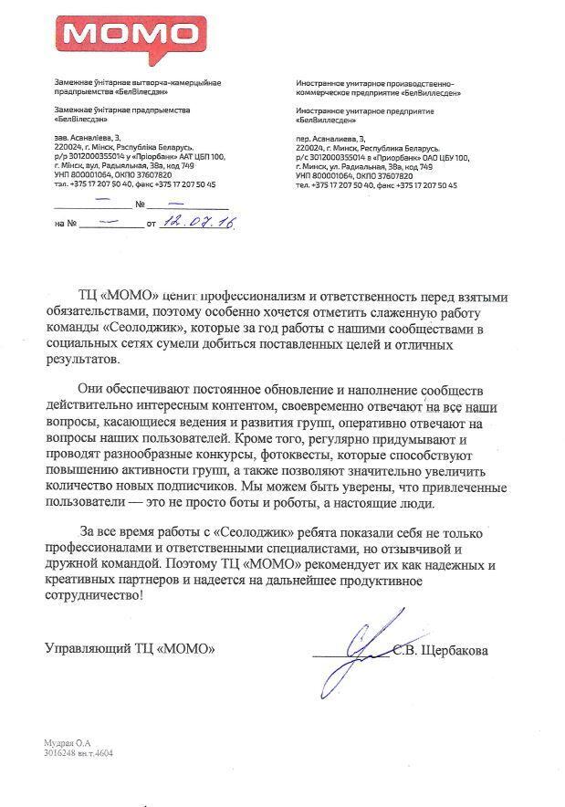 ТЦ «МОМО» ценит профессионализм и ответственность перед взятыми обязательствами, поэтому...