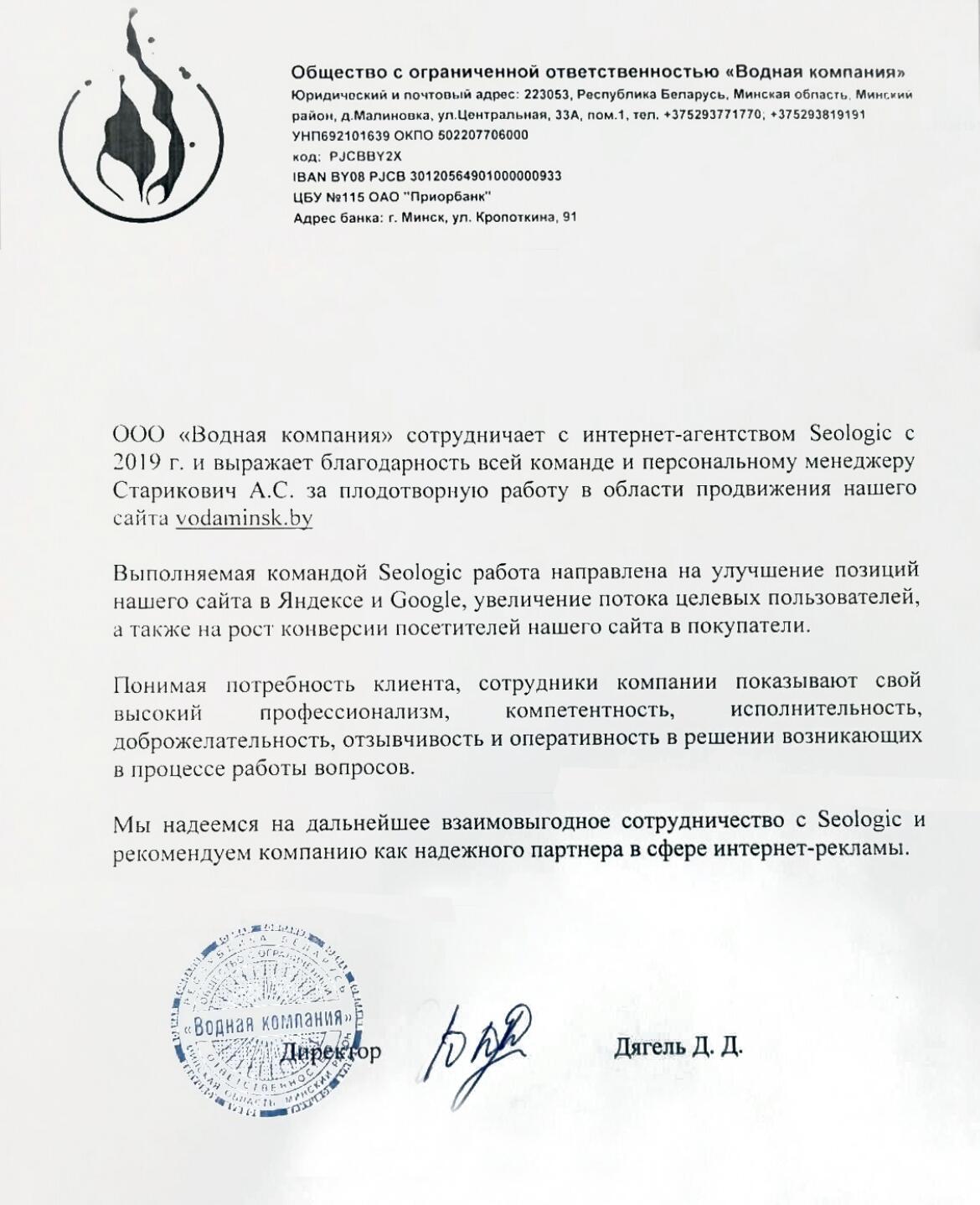 ООО «Водная компания» сотрудничает с интернет-агентством Seologic с 2019 г....