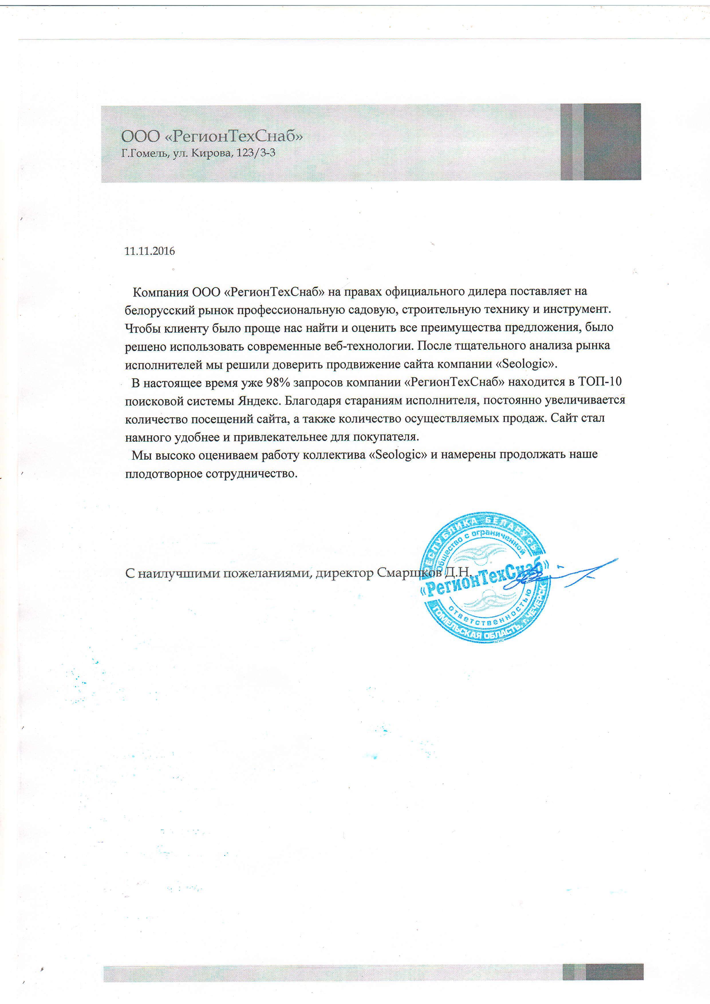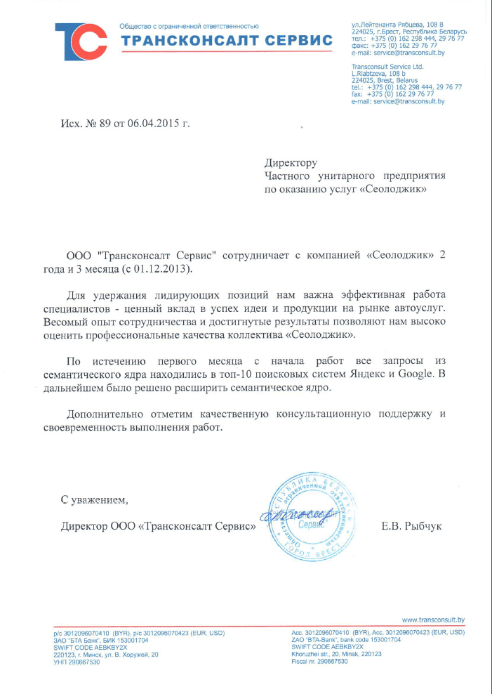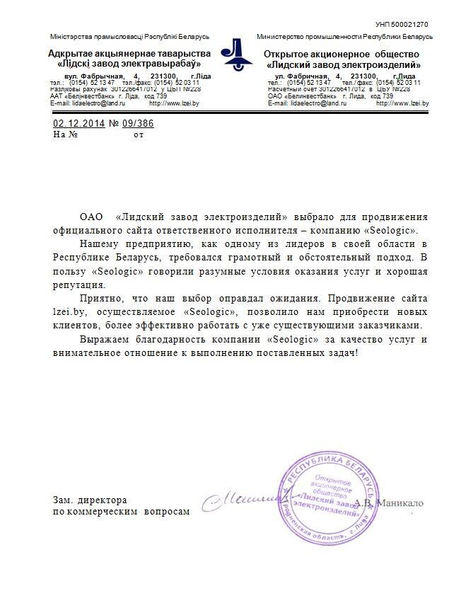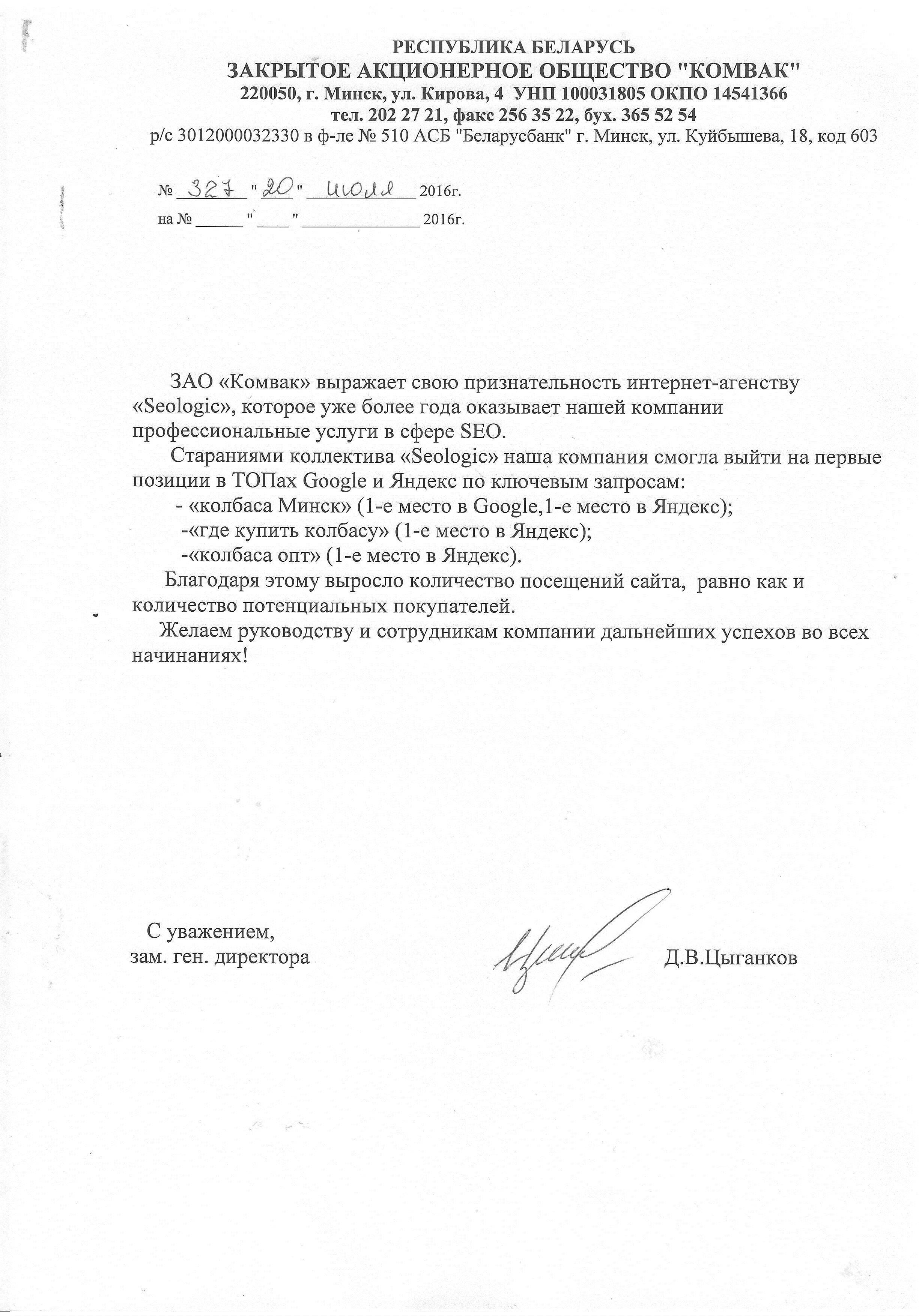Выражаем компании «Сеолоджик» благодарность за качественно оказанную услугу seo-продвижения нашего...