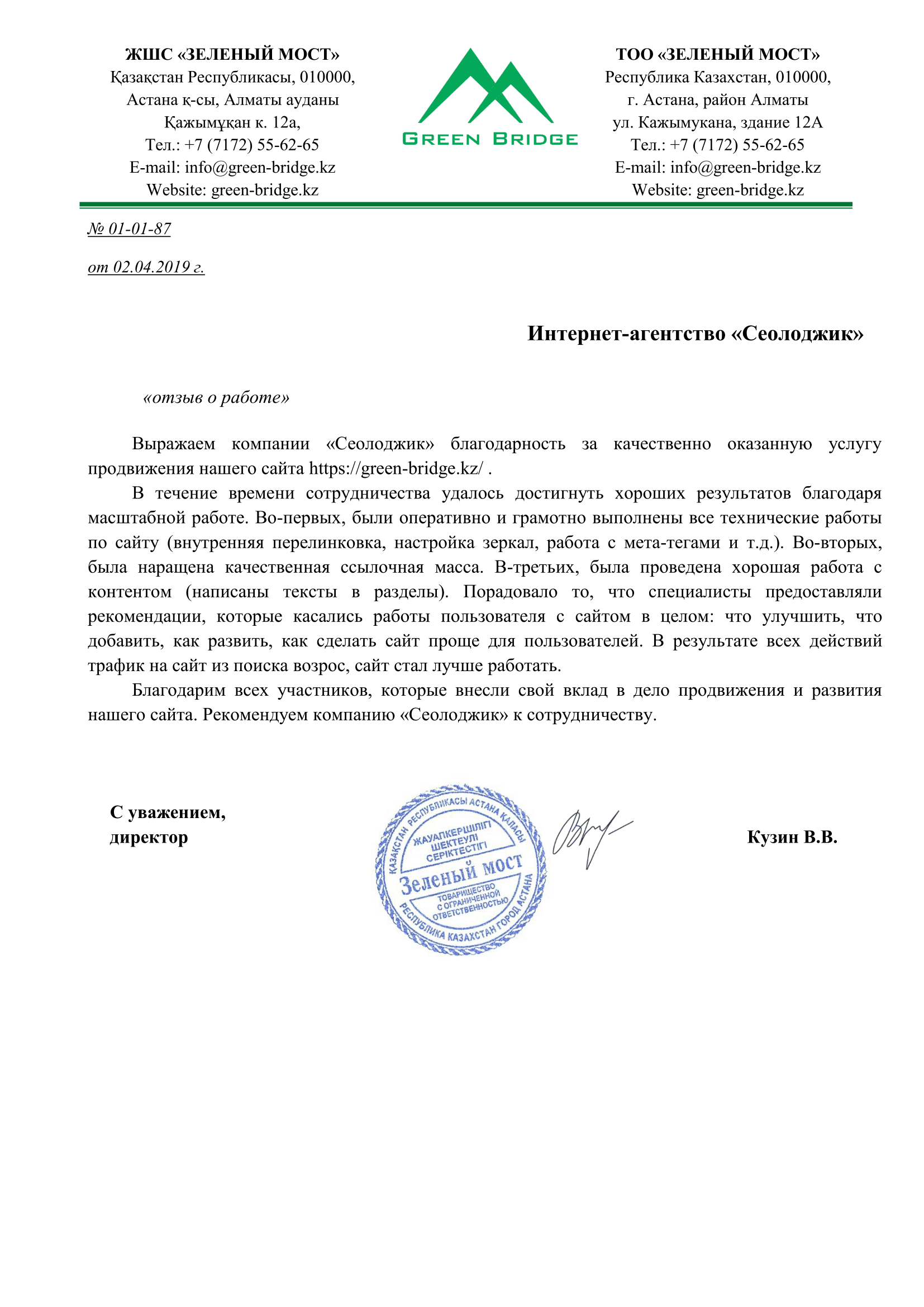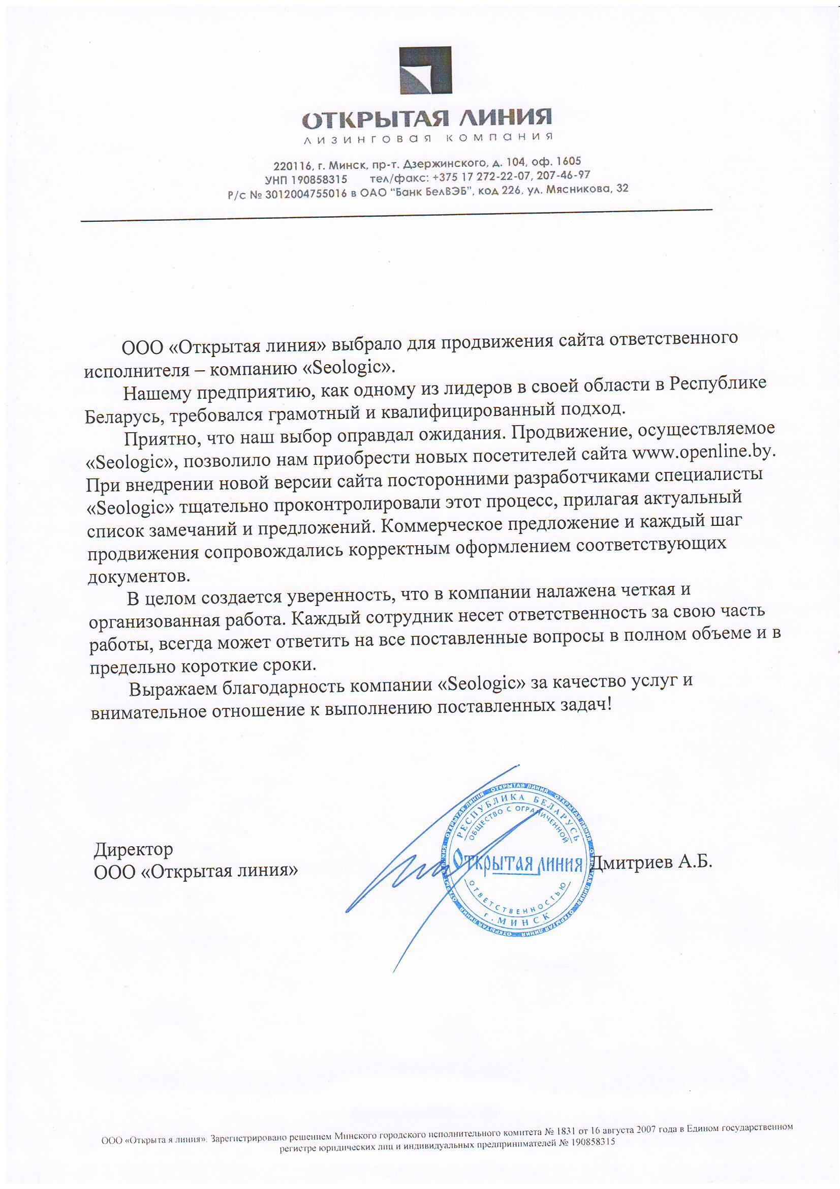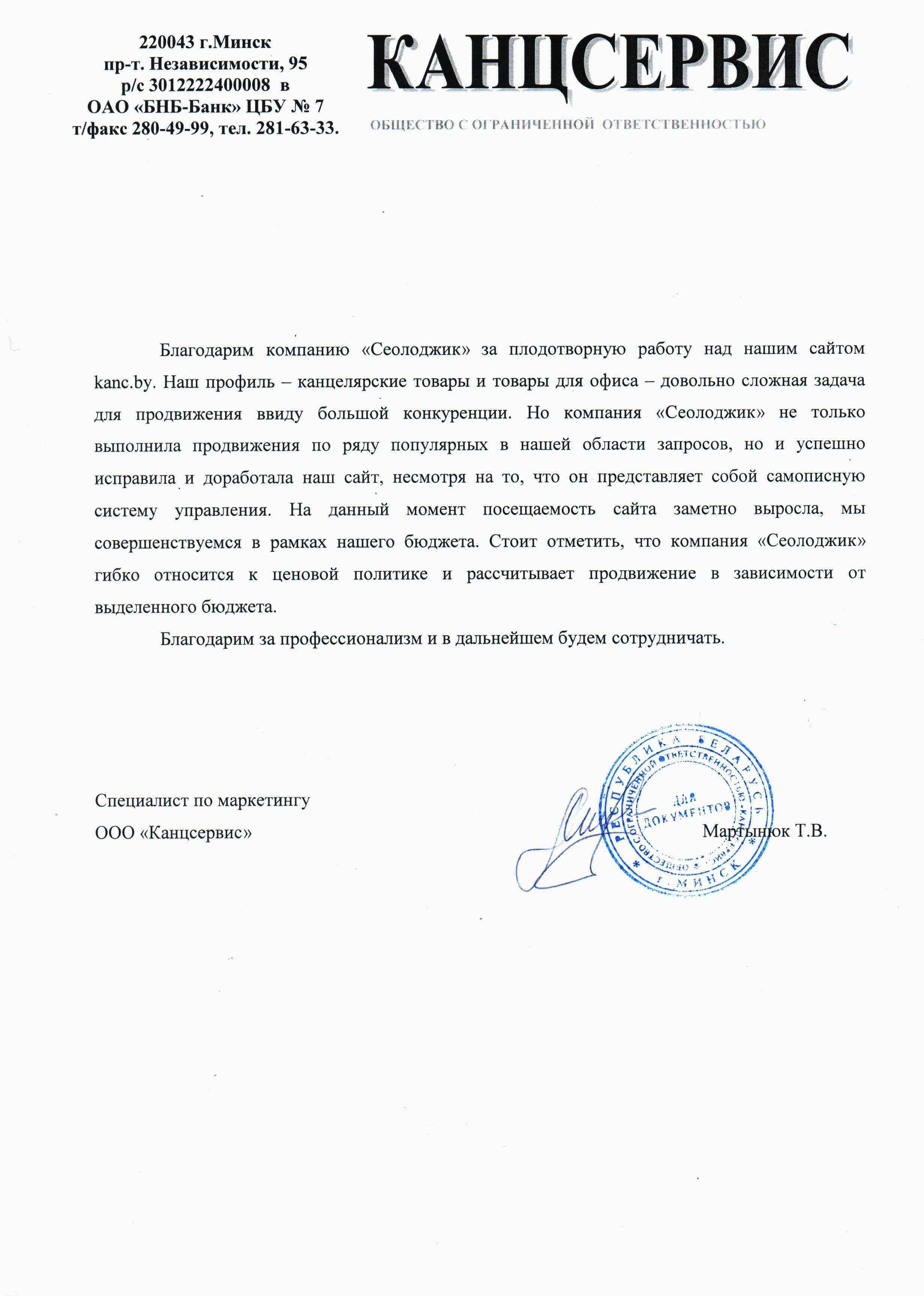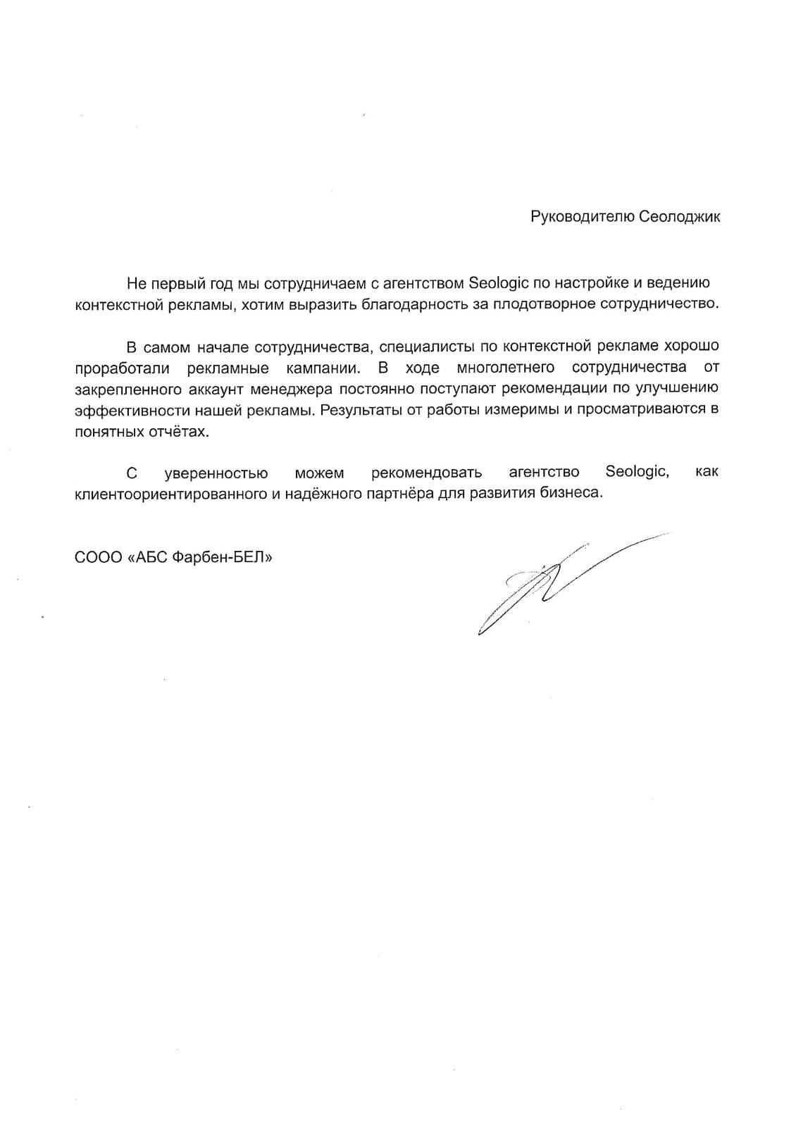 Выражаем компании «Сеолоджик» благодарность за качественно оказанную услугу seo-продвижения нашего...