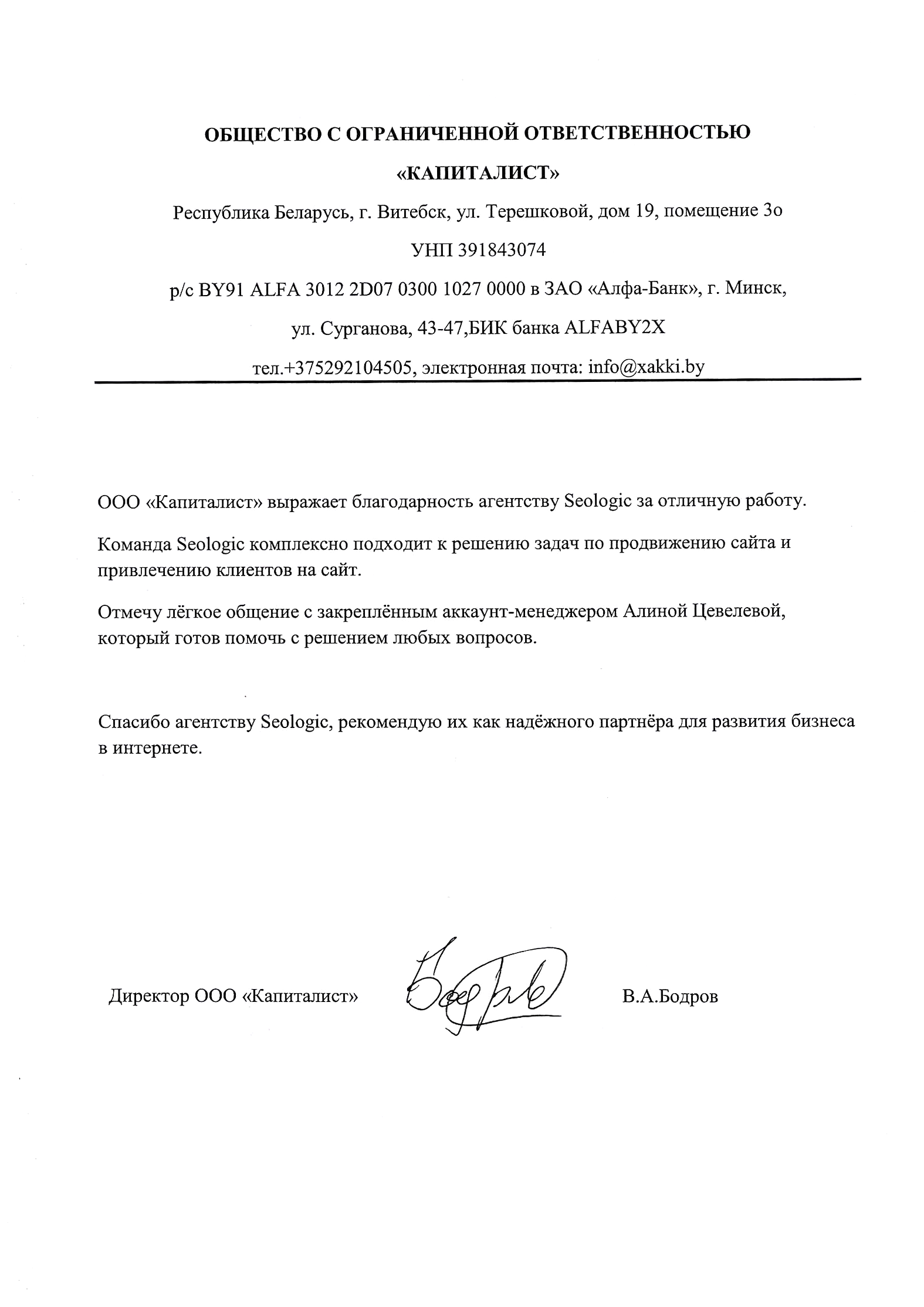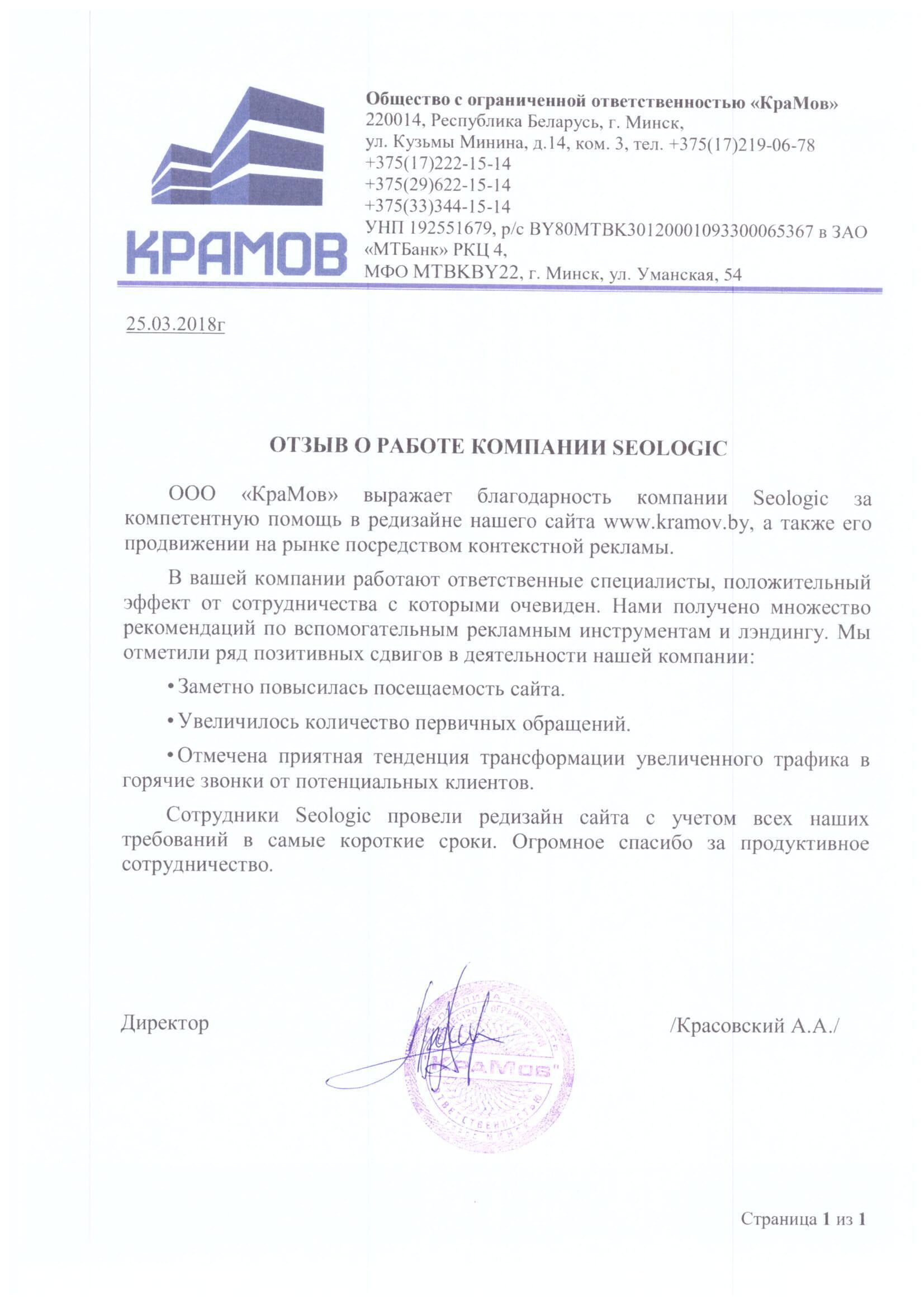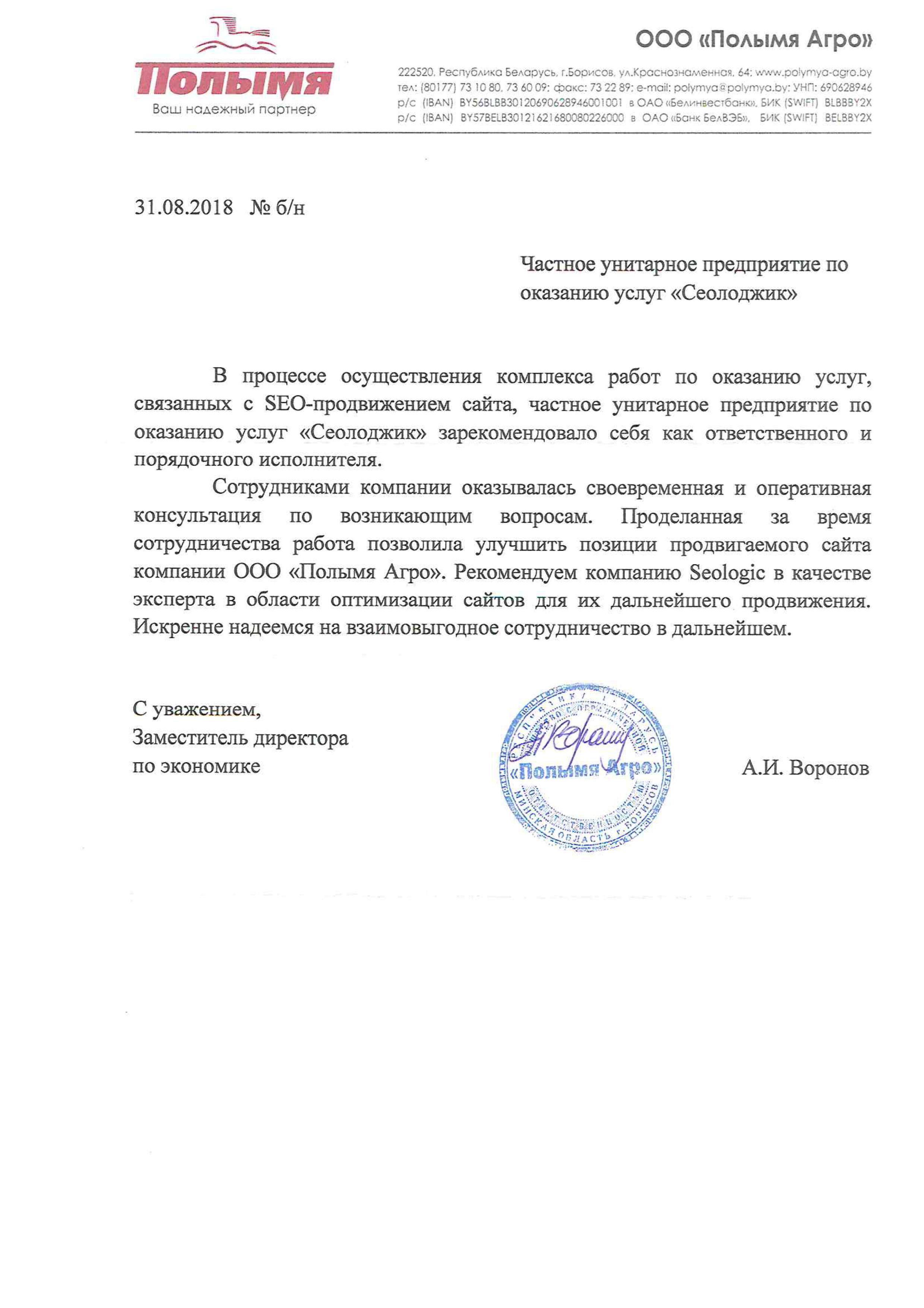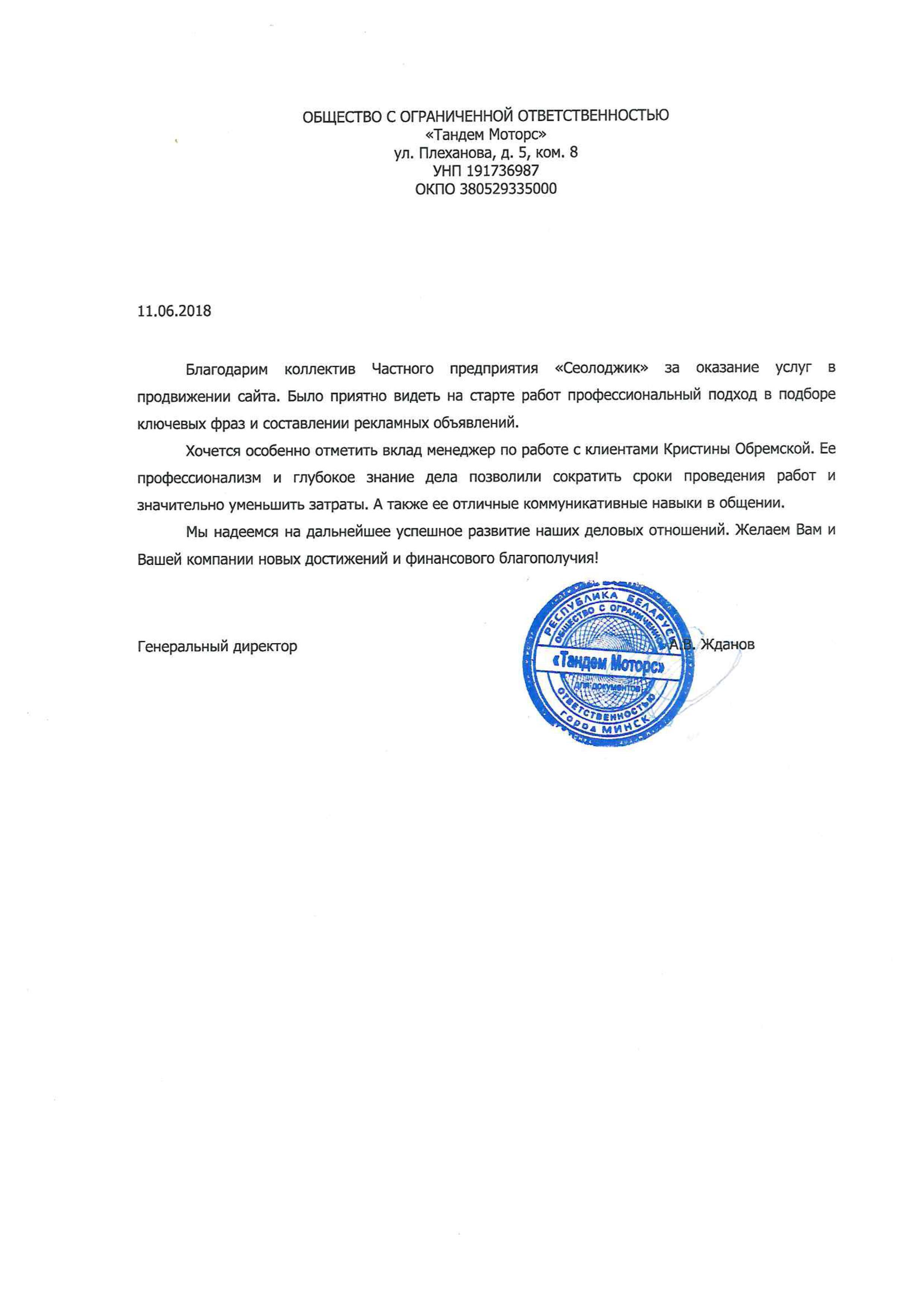 ЧТУП «ТОПТВЕНТИ» (сайт top20.by) выражает благодарность компании Seologic, которая оптимизировала...
