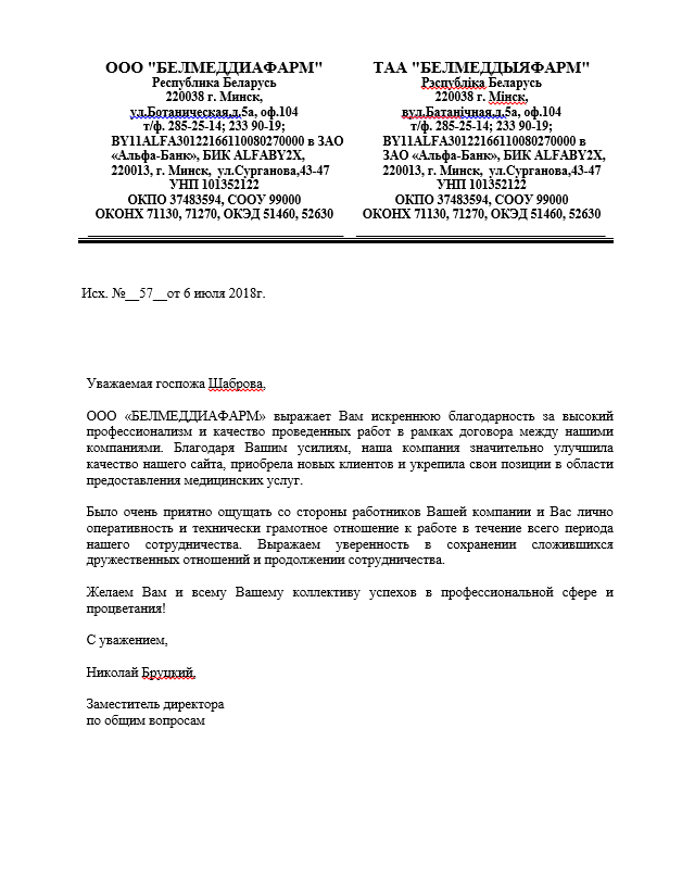 ООО «БЕЛМЕДДИАФАРМ» выражает Вам искреннюю благодарность за высокий профессионализм и...