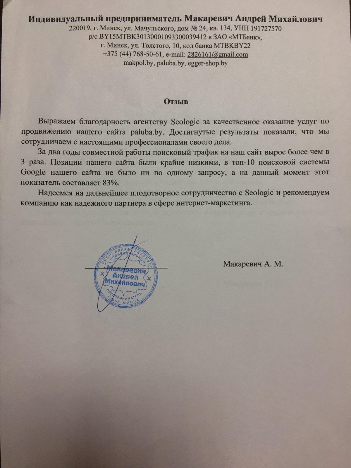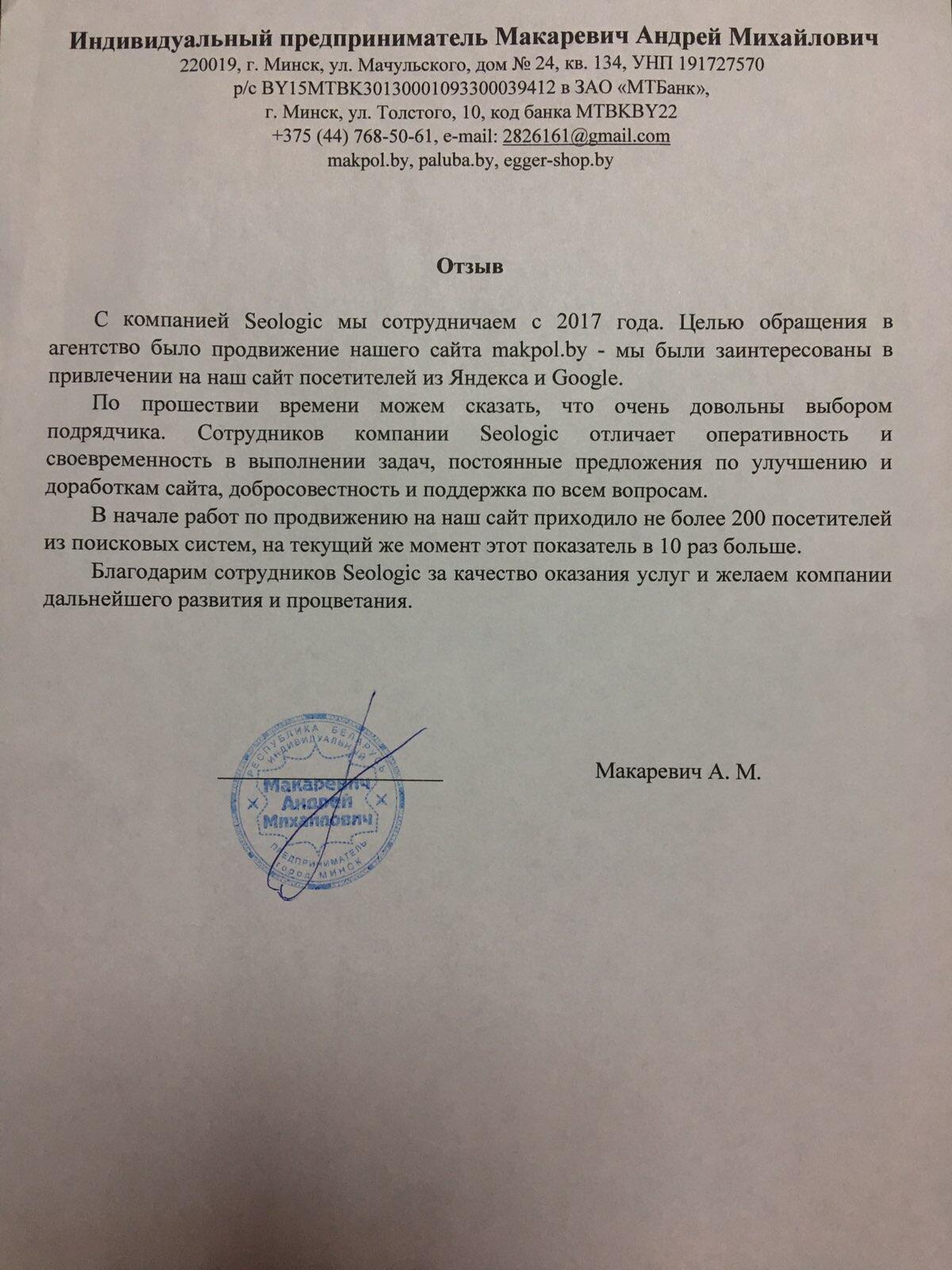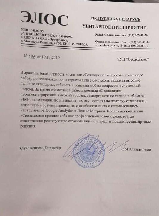 Выражаем благодарность компании «Сеолоджик» за профессиональную работу по продвижению интернет-сайта...