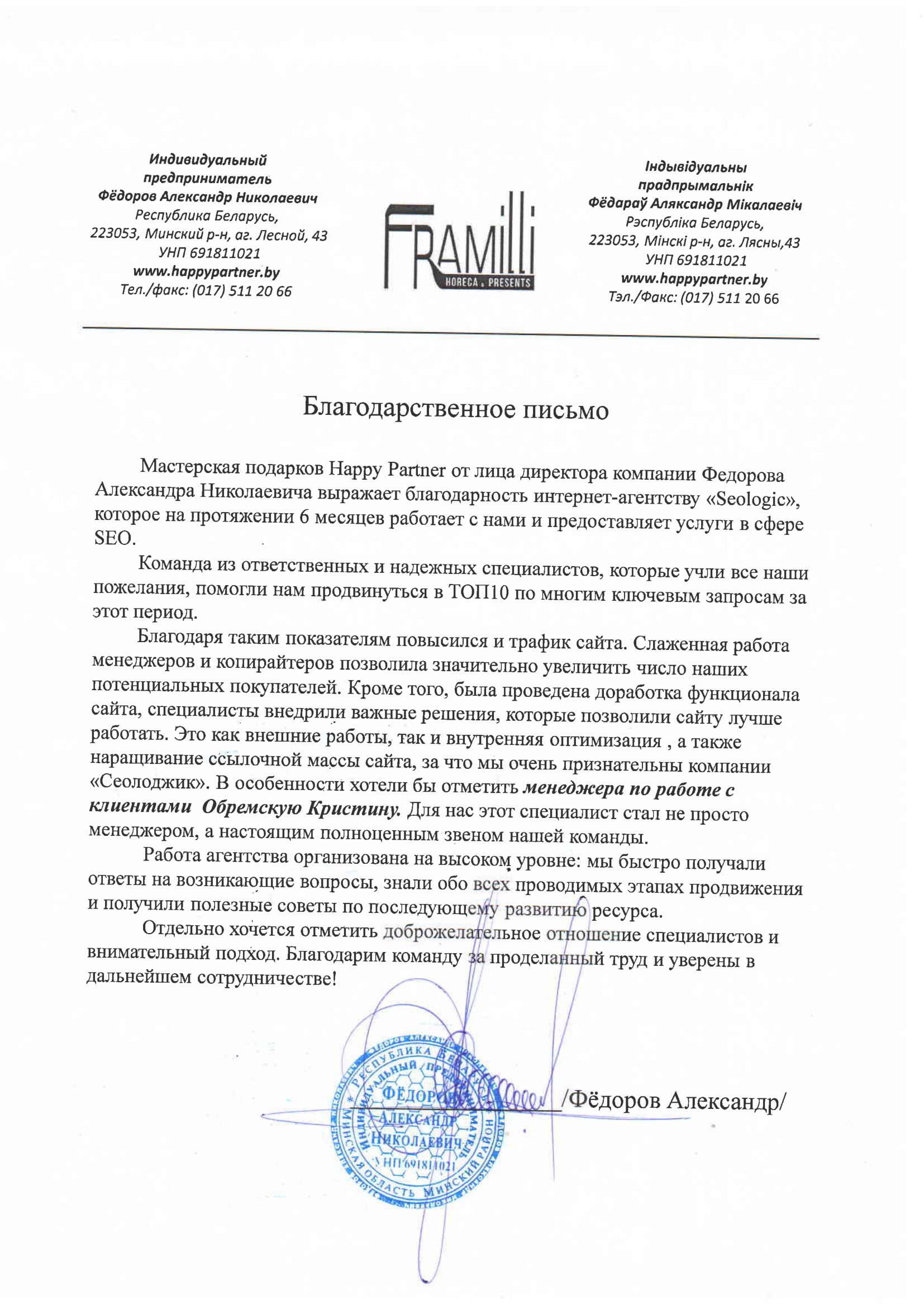 Мастерская подарков Нарру Раrtner от лица директора компании Федорова Александра...