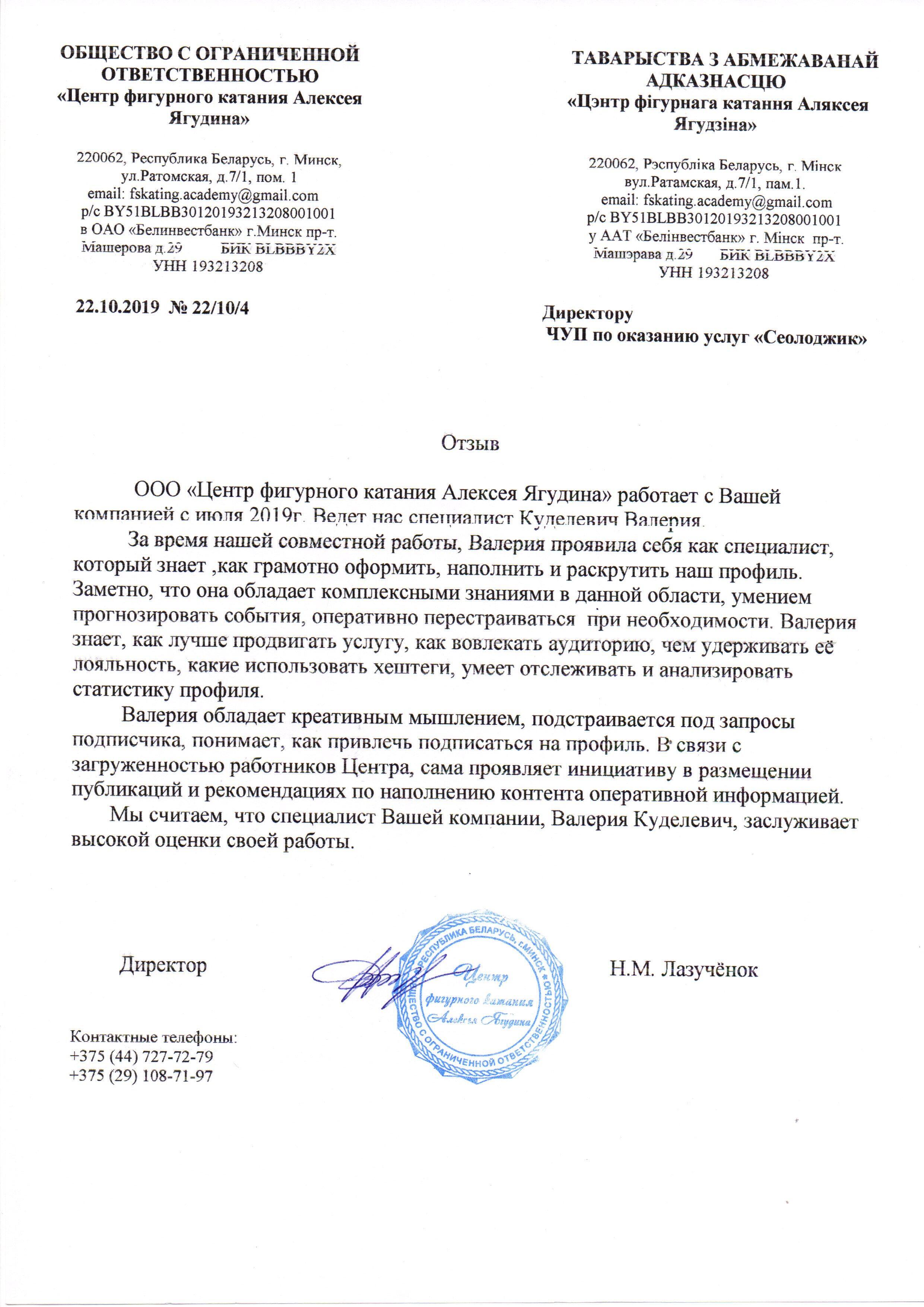 За время нашей совместной работы, Валерия проявила себя как специалист,...