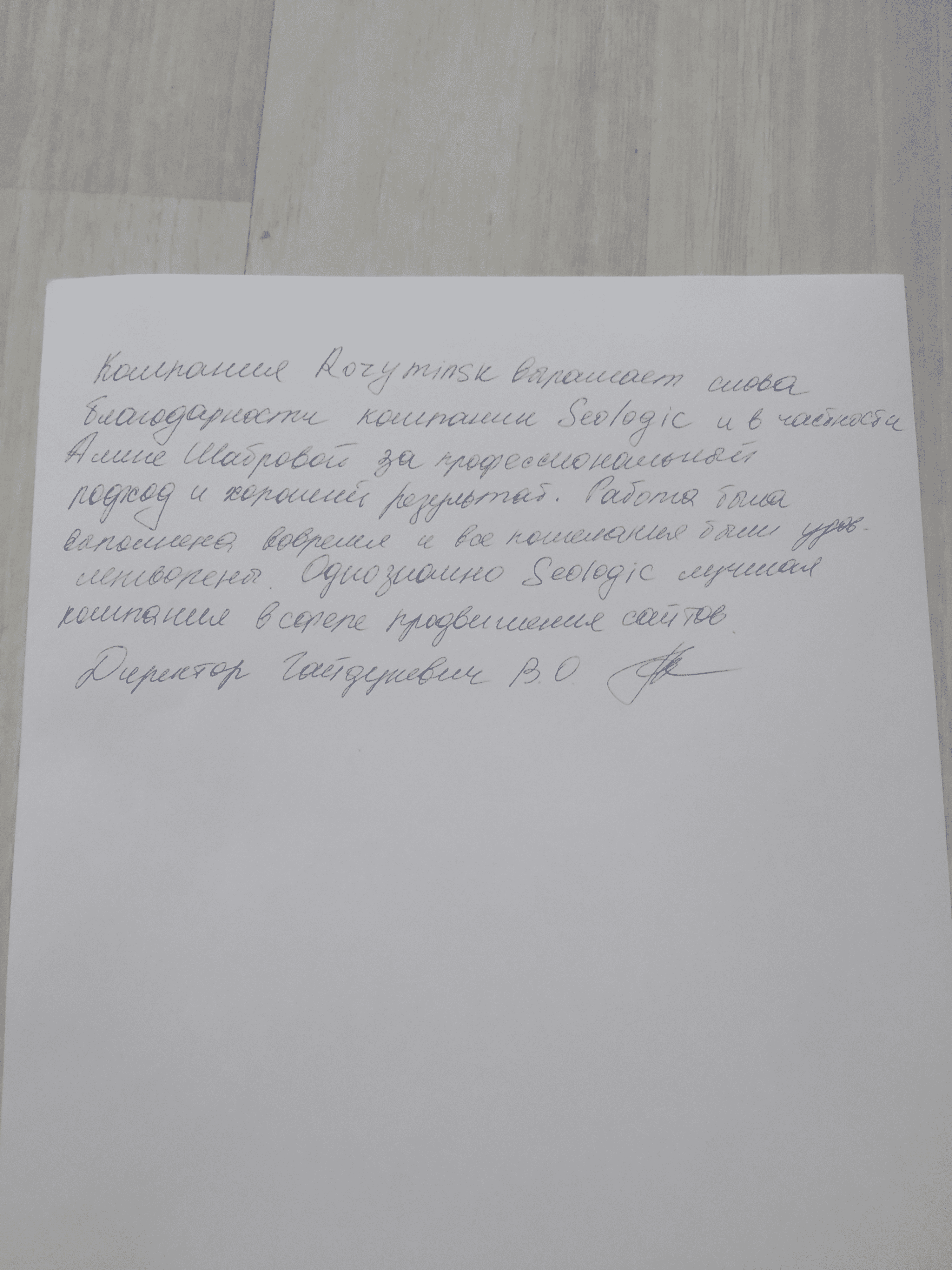 Выражаем благодарность агентству Seologic за качественное оказание услуг по продвижению...