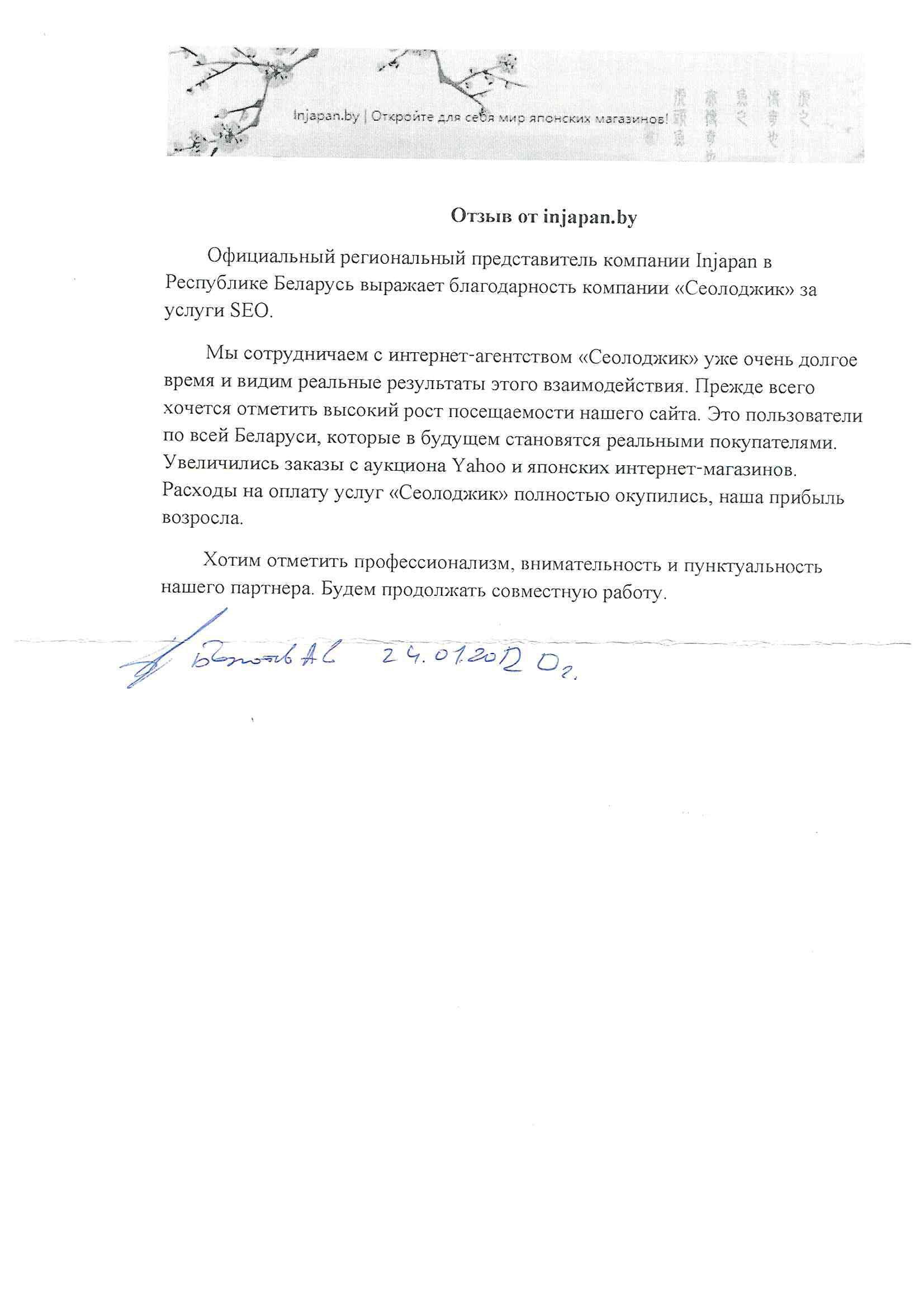 Официальный региональный представитель компании Injapan в Республике Беларусь выражает благодарность...